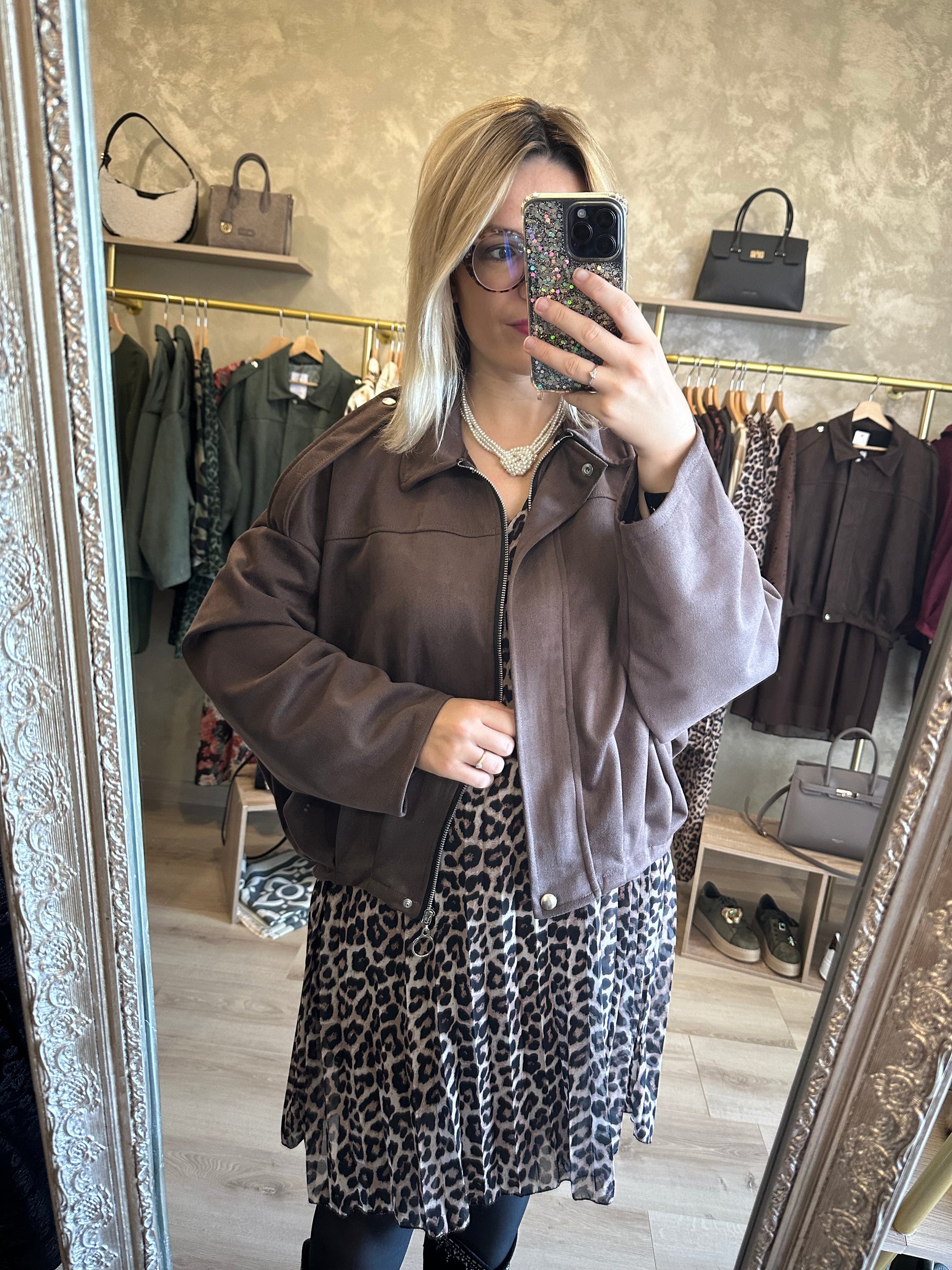 Blouson façon daim couleur chocolat, à manches longues et coupe ballon