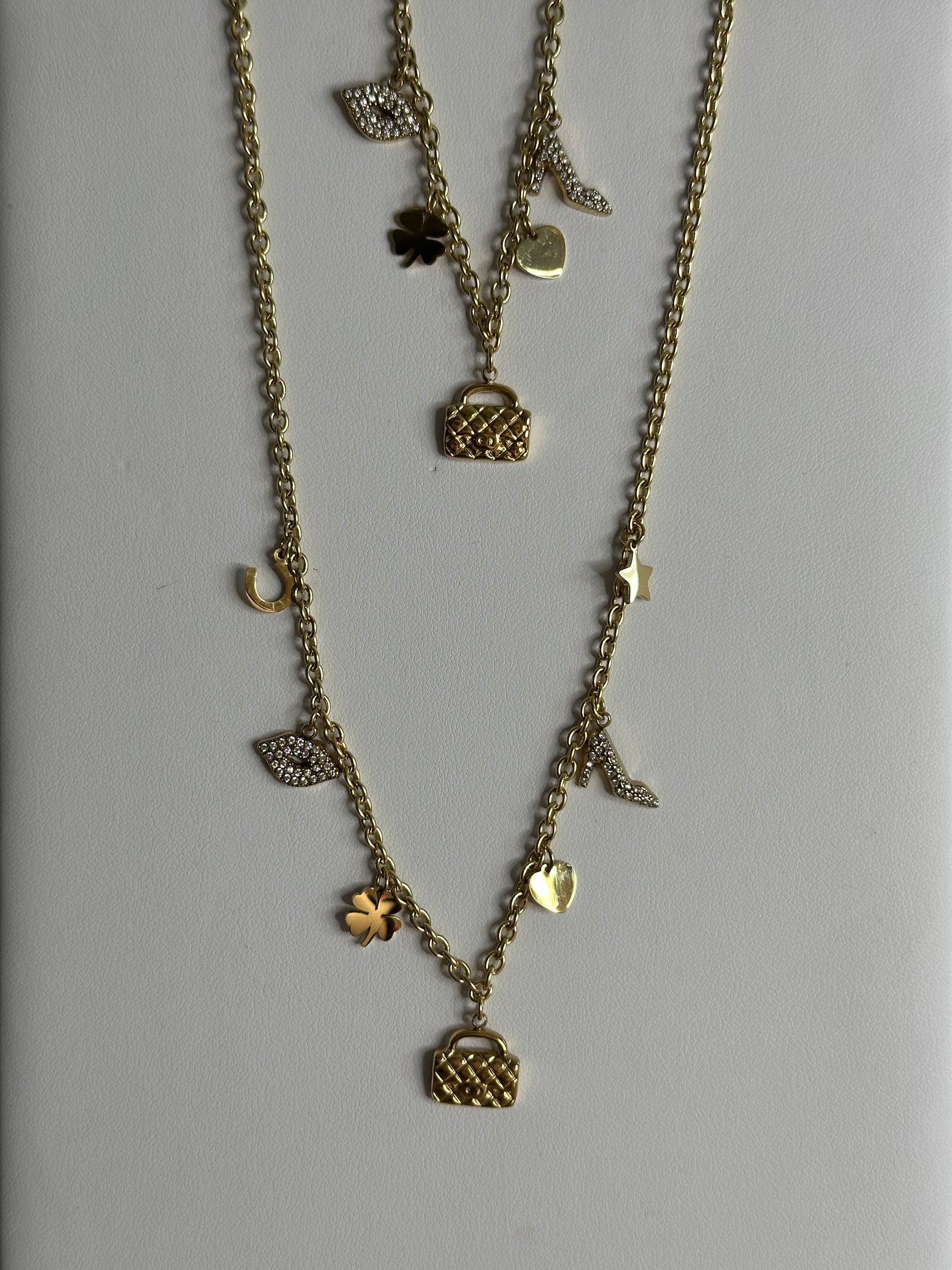 Collier et bracelet fantaisie doré avec strass. Pendentifs FASHION.