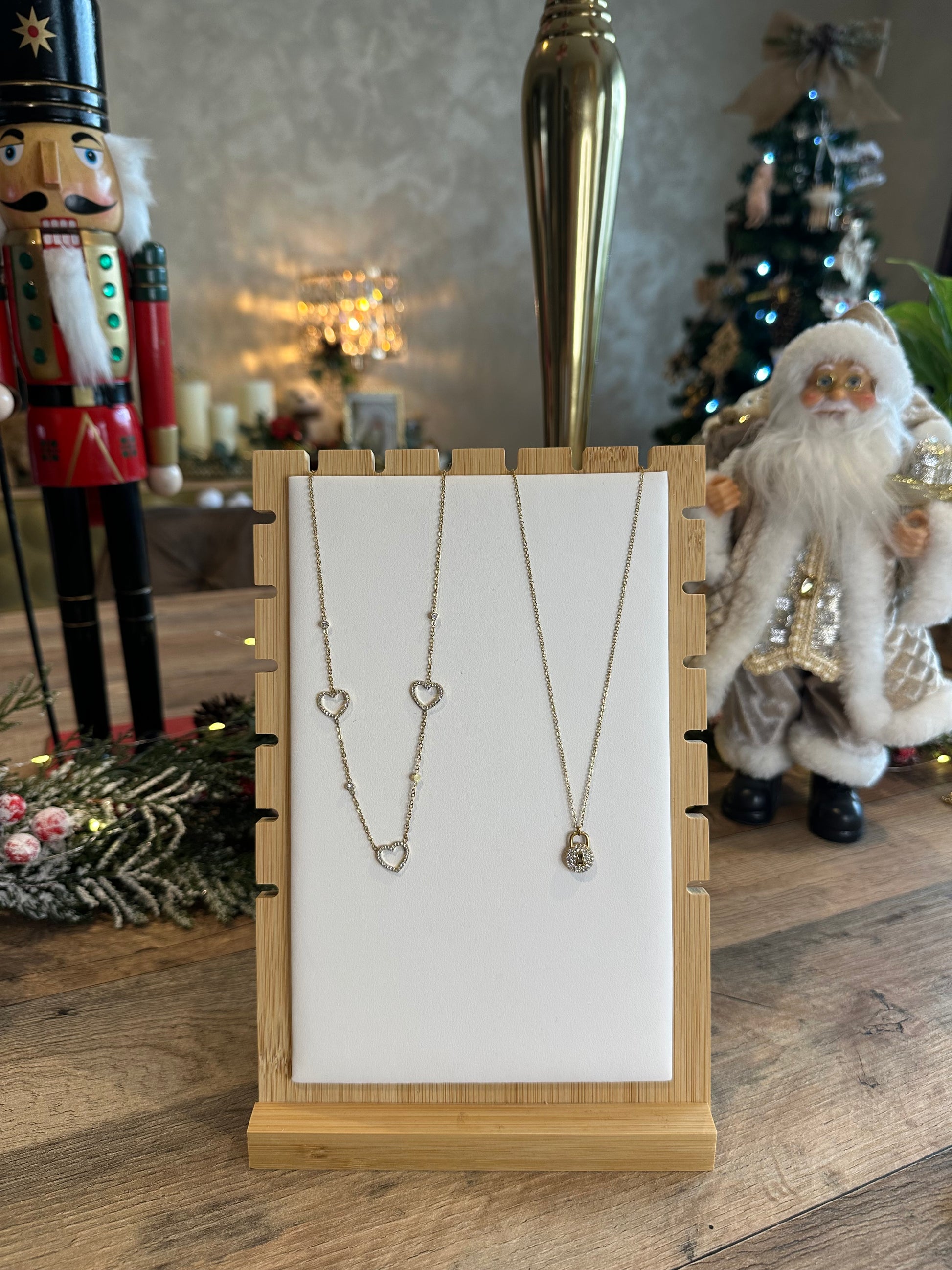 Collier fins et chic dorés et strass.