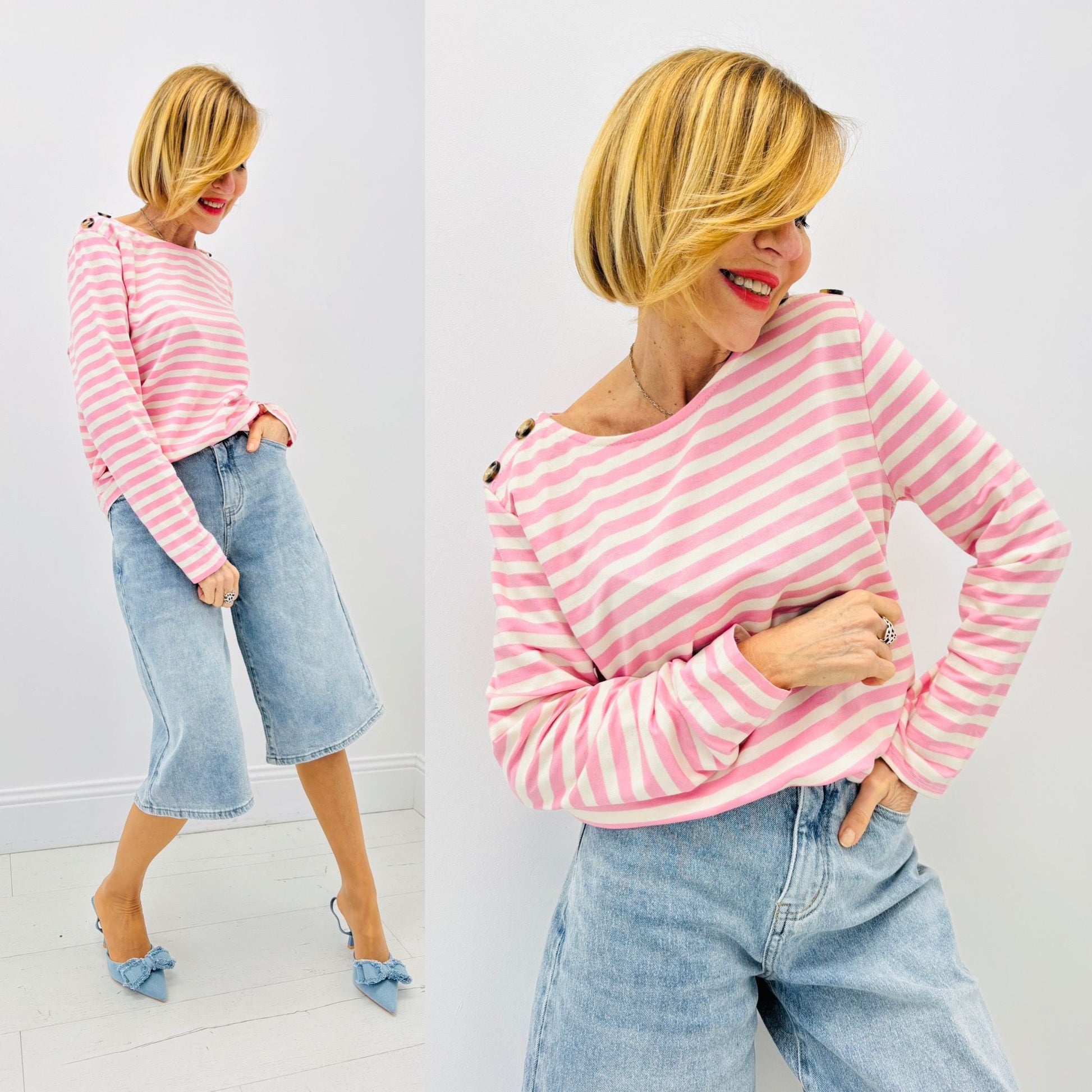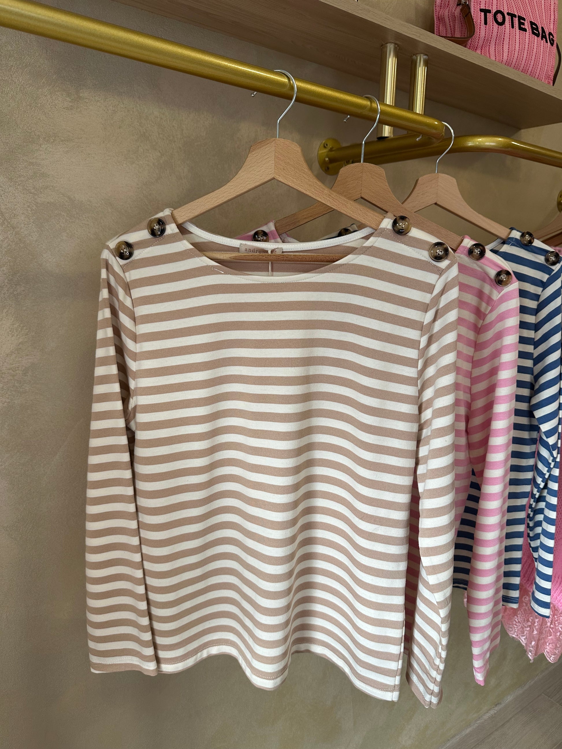 - Petit haut marinière à rayures avec boutons chic sur les épaules à manches longues