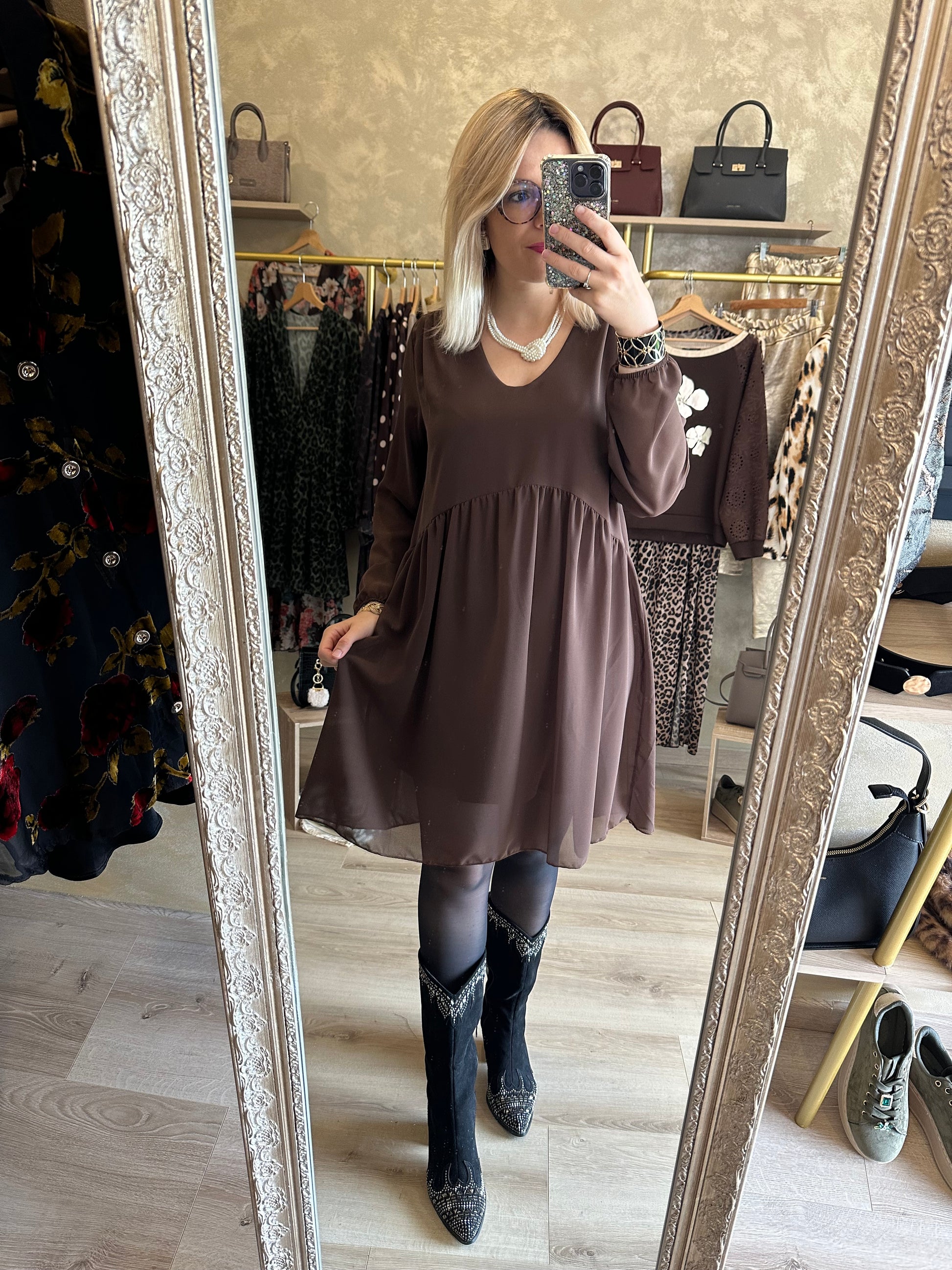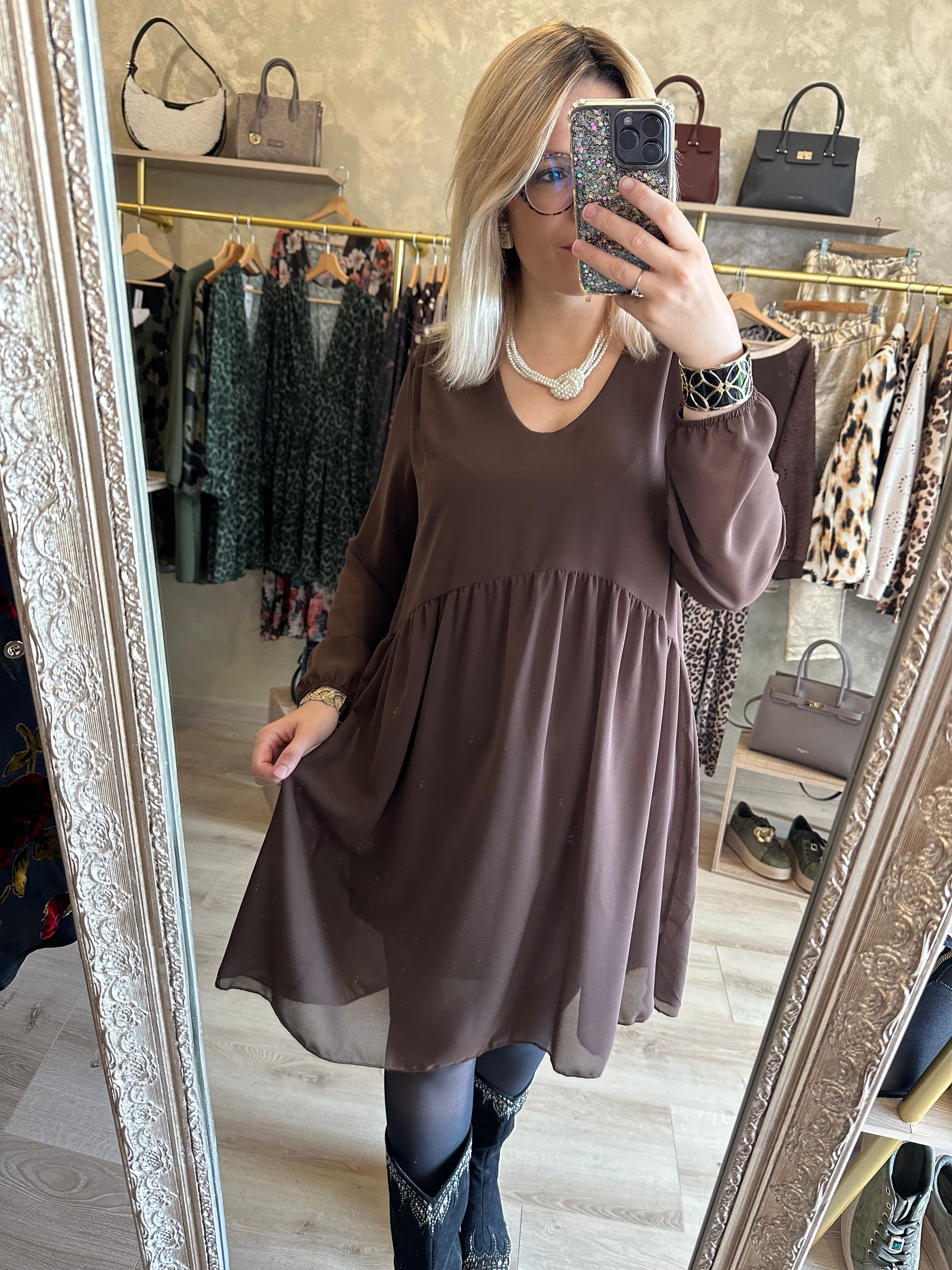 - Robe chocolat uni, à la coupe fluide et raffinée, doublée pour plus de confort