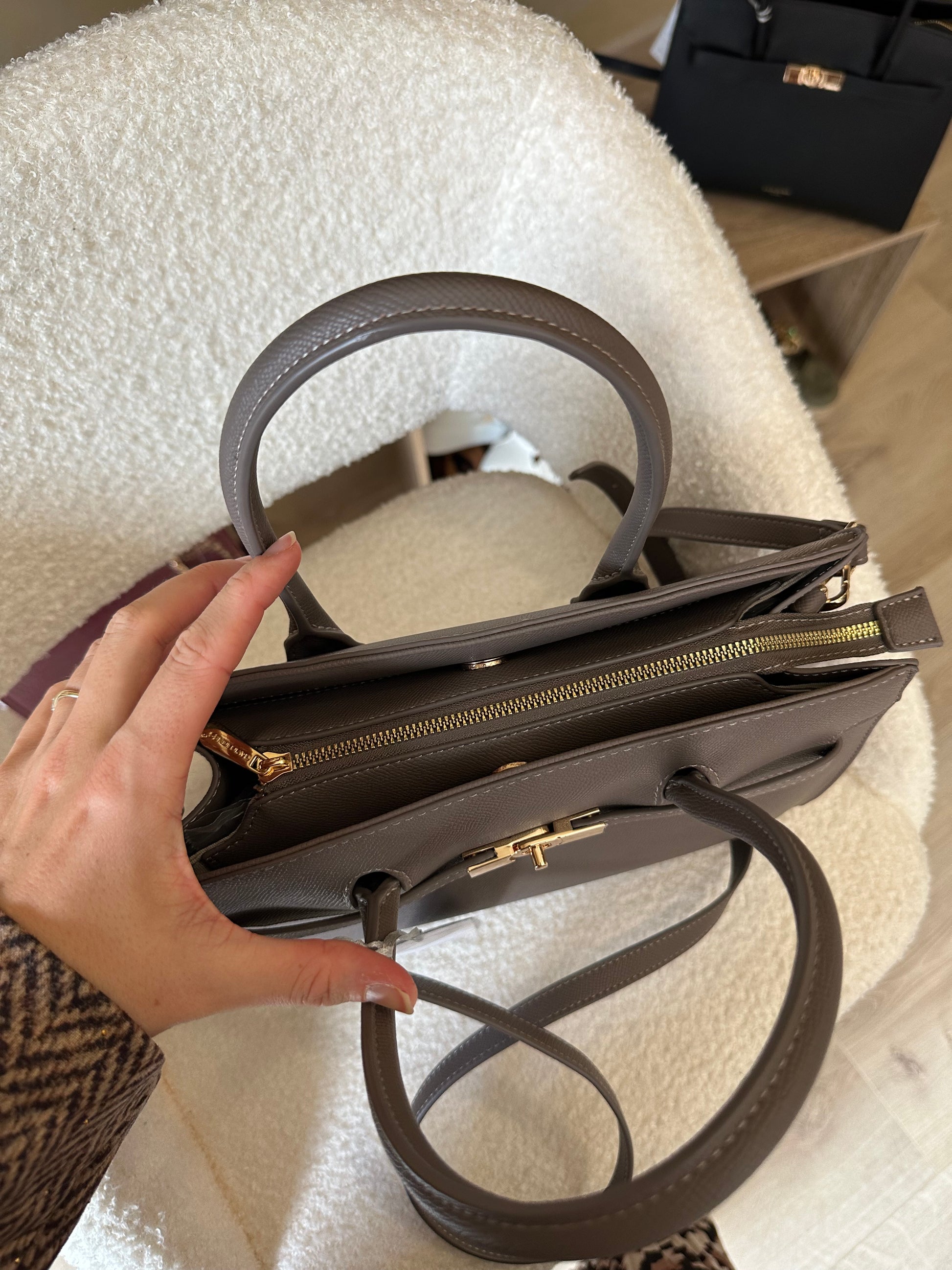 - Sac à main couleur taupe de la marque DAVID JONES PARIS élégant, tendance et intemporel
