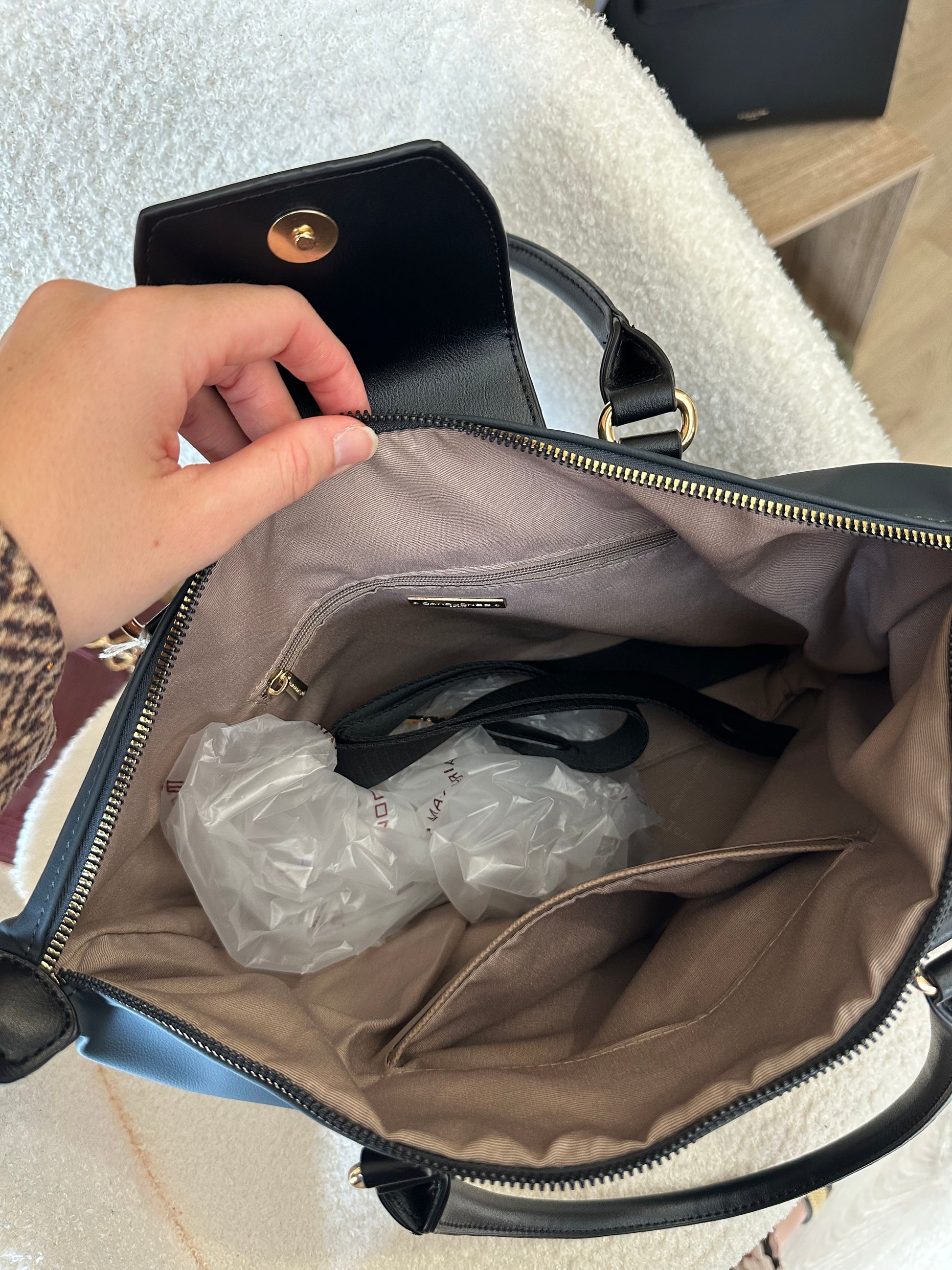 - Sac cabas gris foncé et noir de la marque DAVID JONES PARIS pratique et tendance pour transporter tous vos essentiels