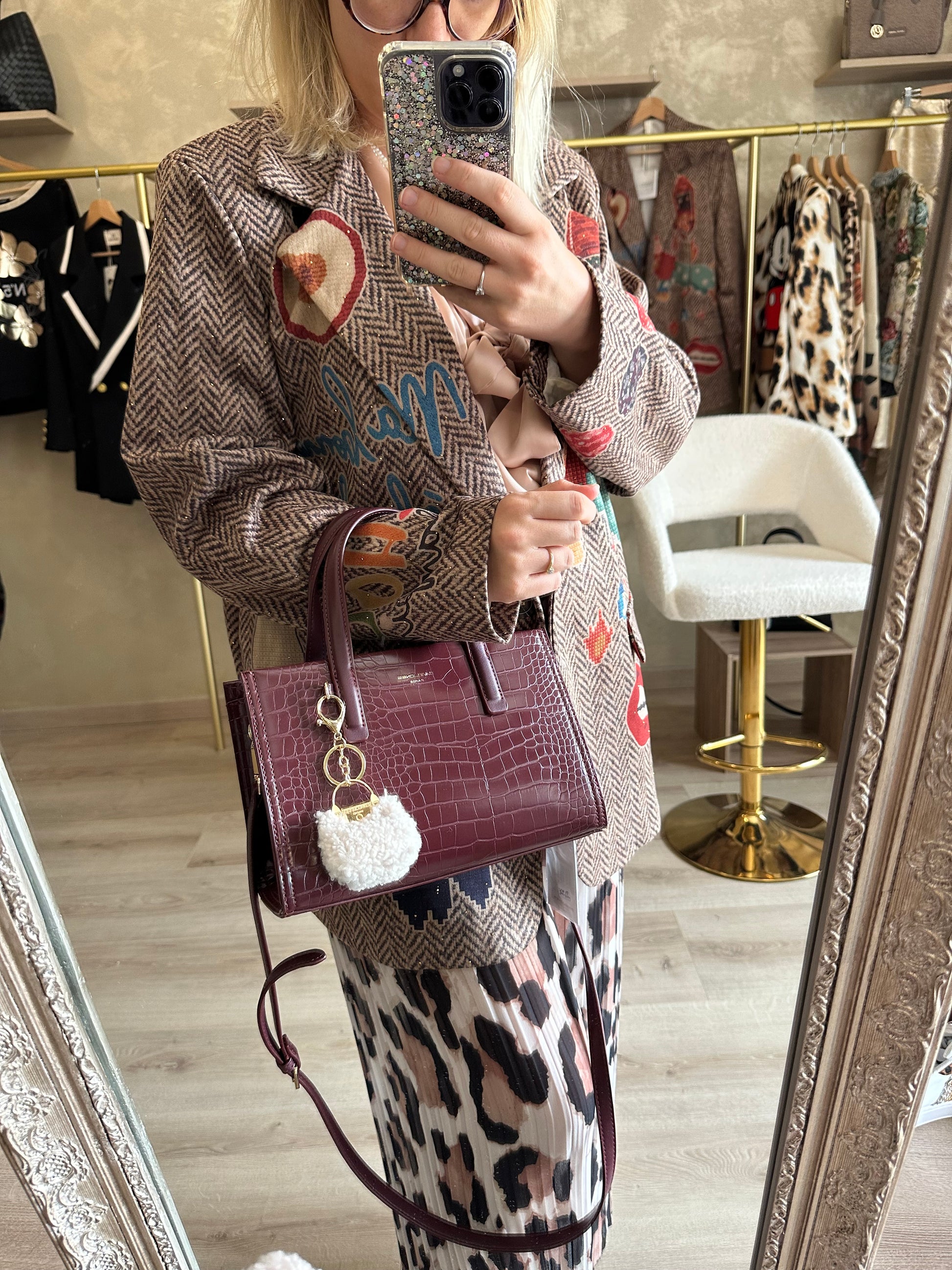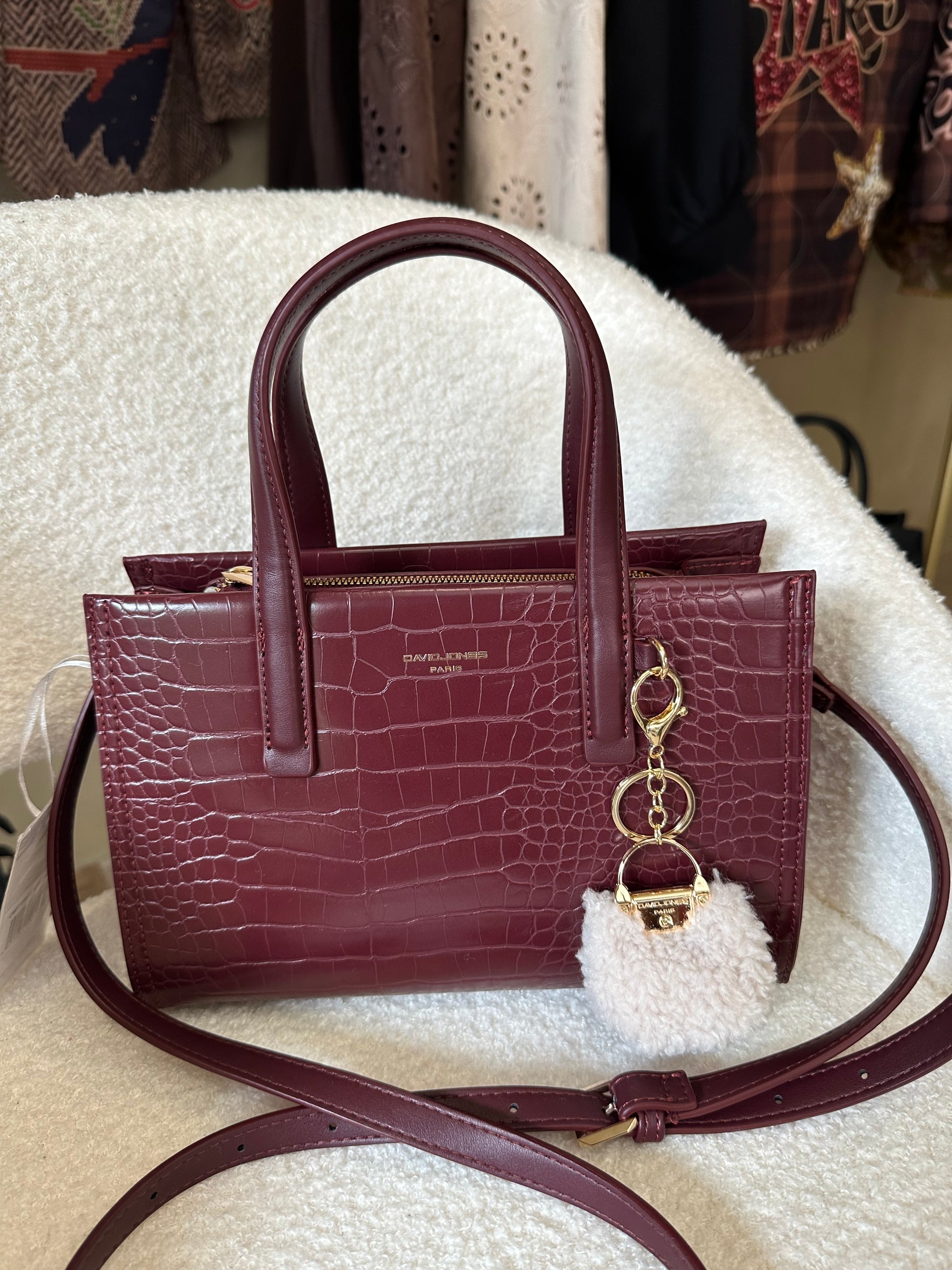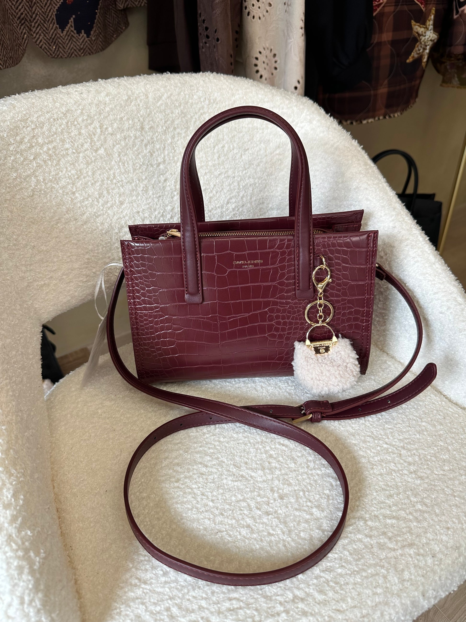 - Sac à main bordeau effet croco de la marque DAVID JONES PARIS distingué, élégant et plein de charme