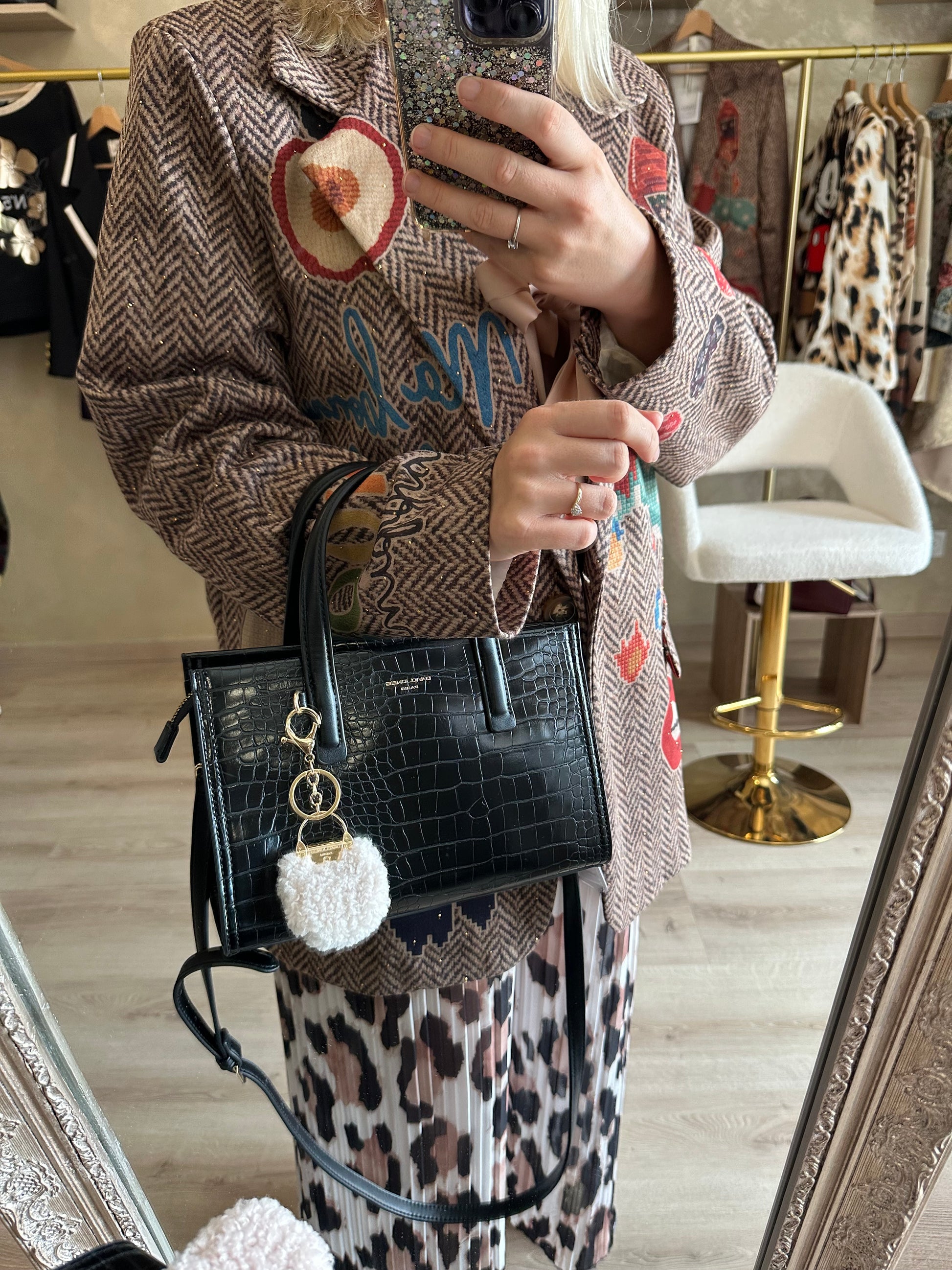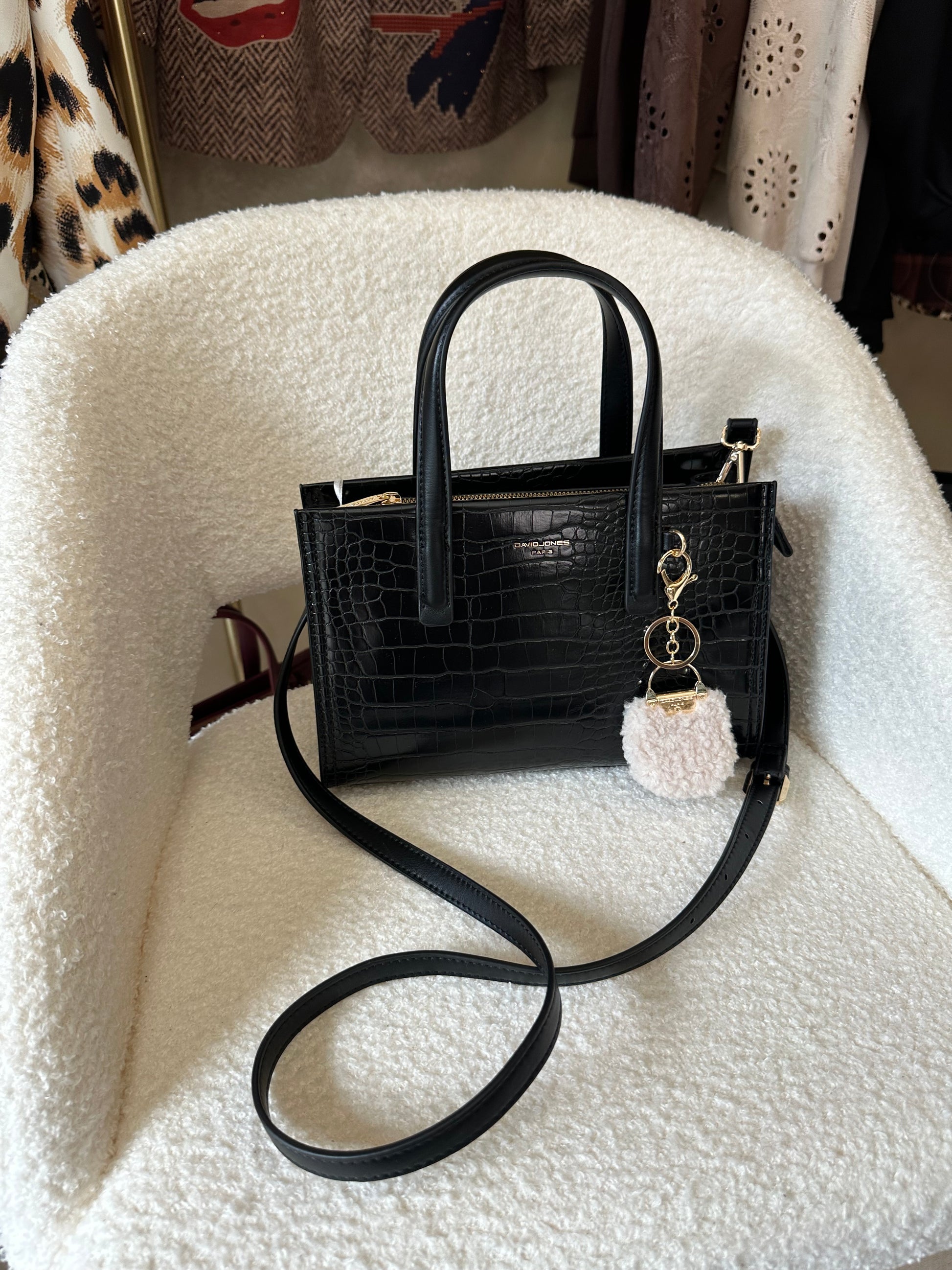 - Sac à main noir effet croco de la marque DAVID JONES PARIS distingué, élégant et plein de charme