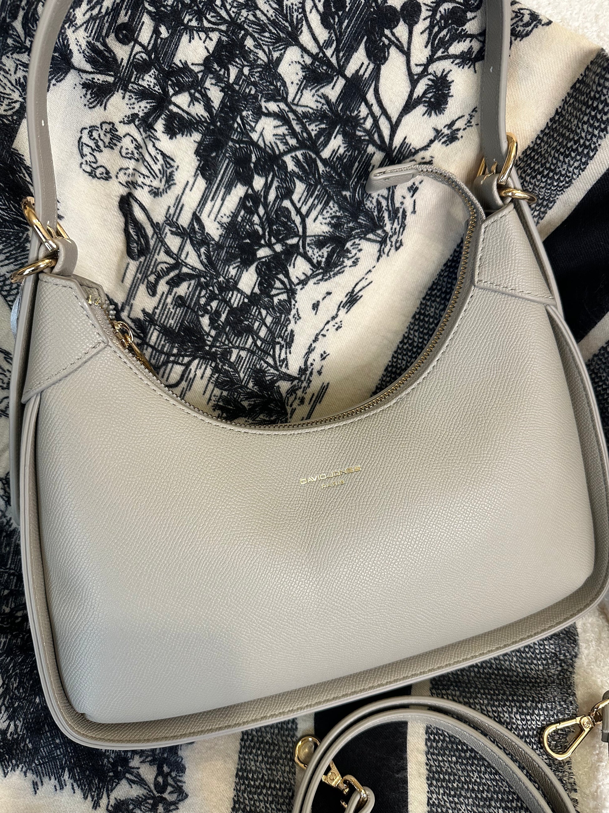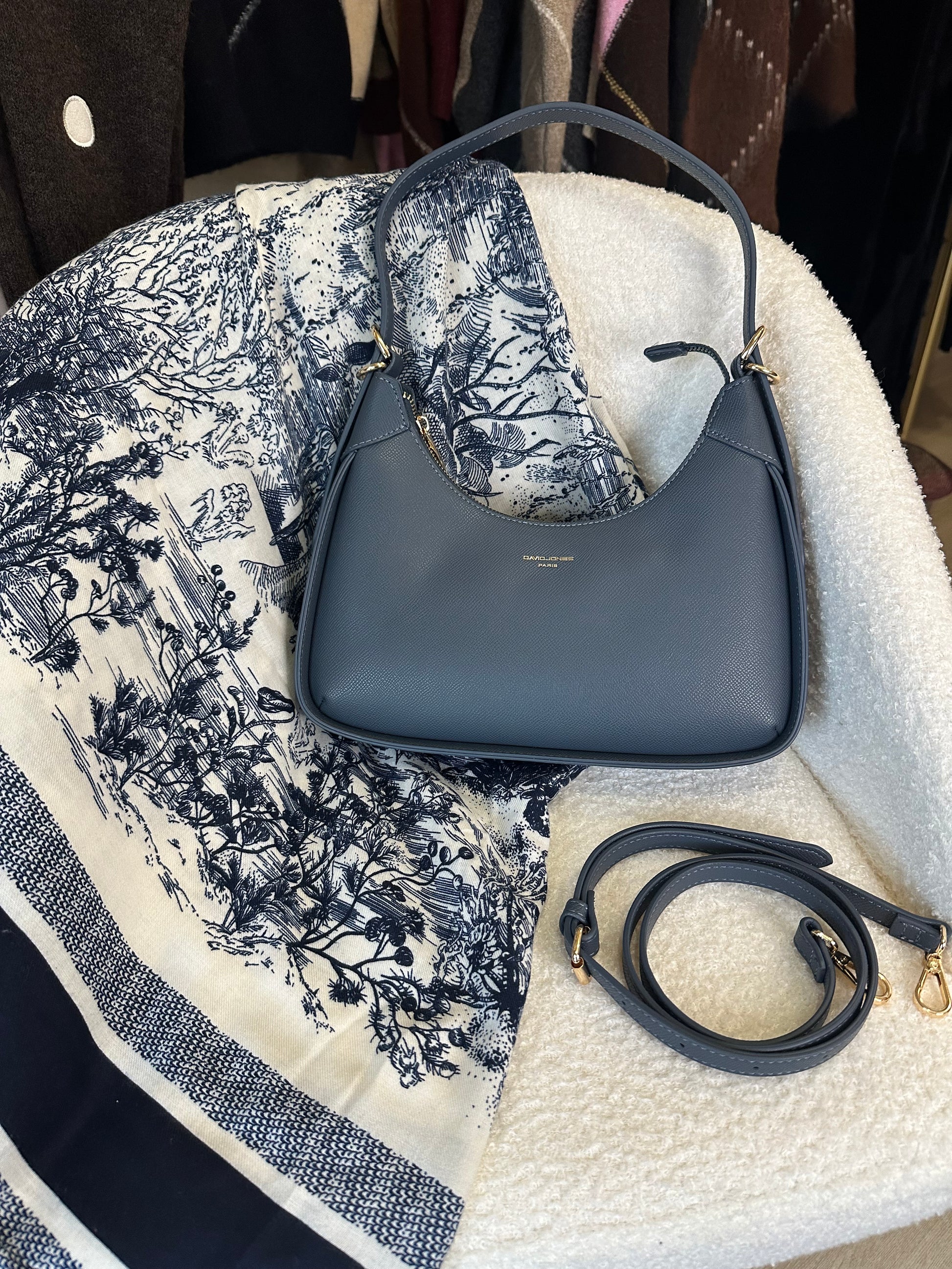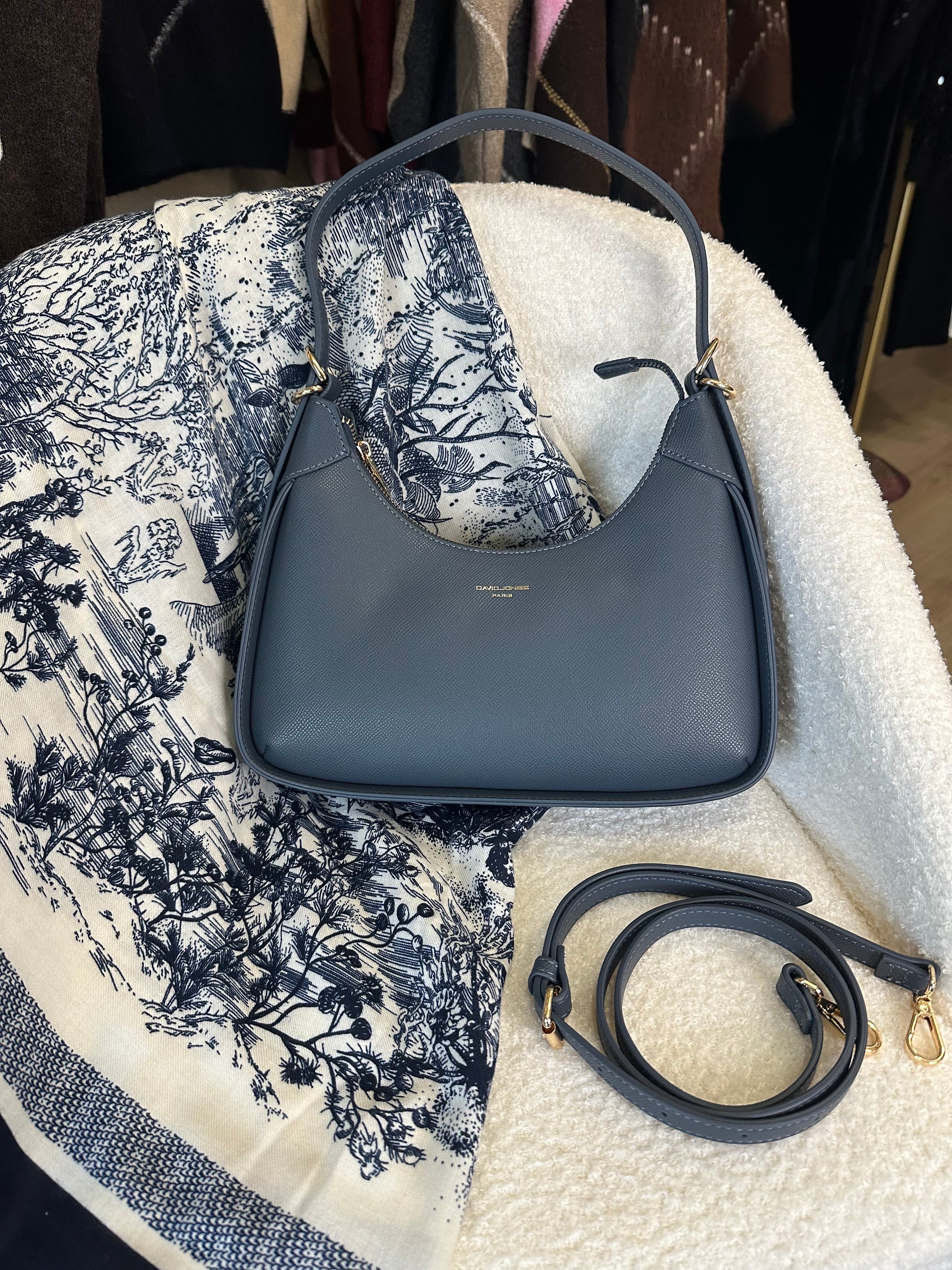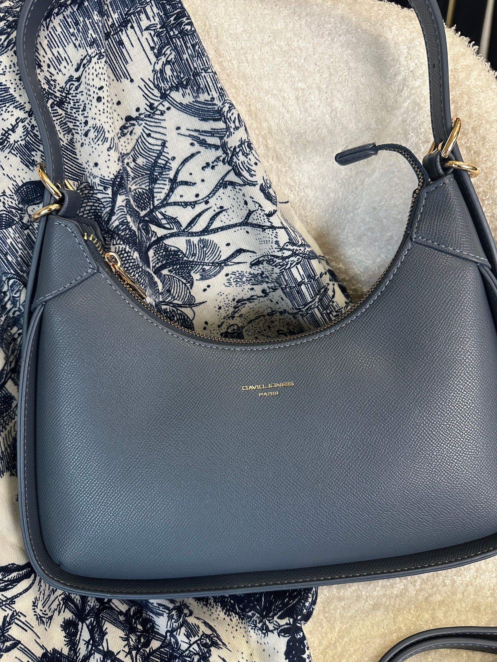 - Petit sac à main bleu jeans clair et gris clair de la marque DAVID JONES PARIS chic, pratique et tendance