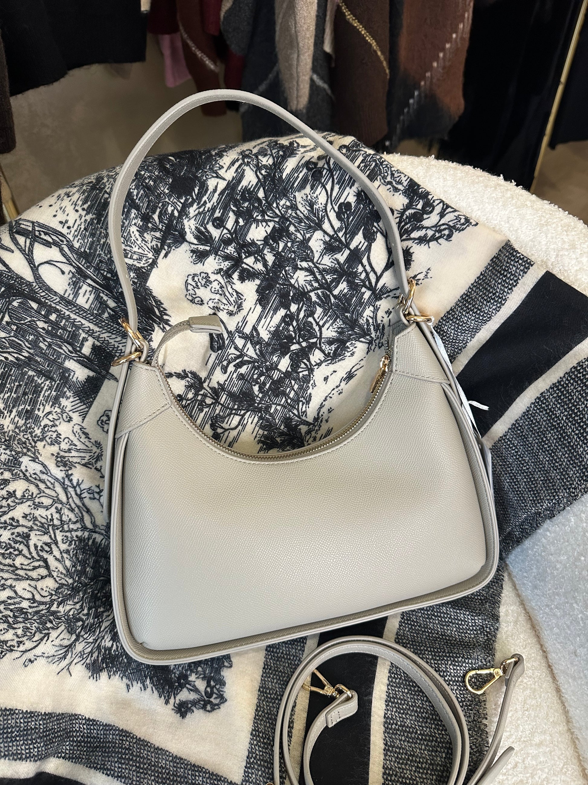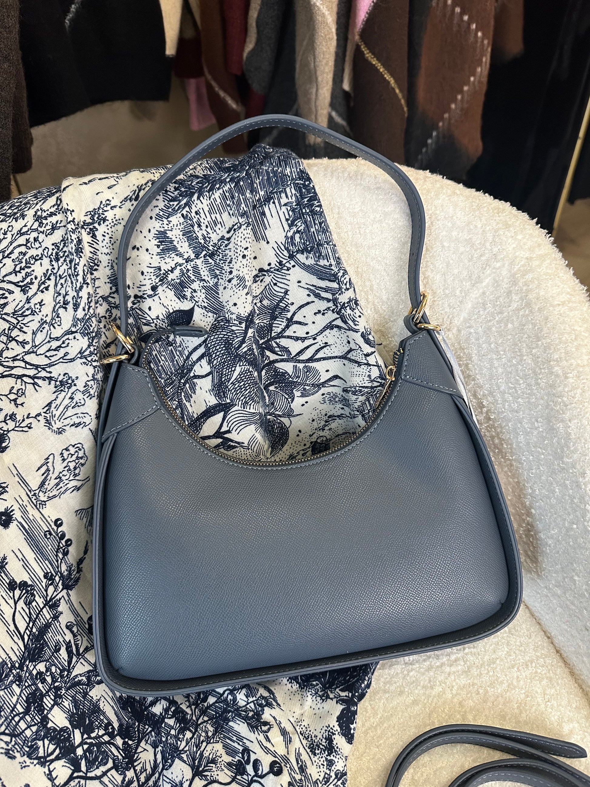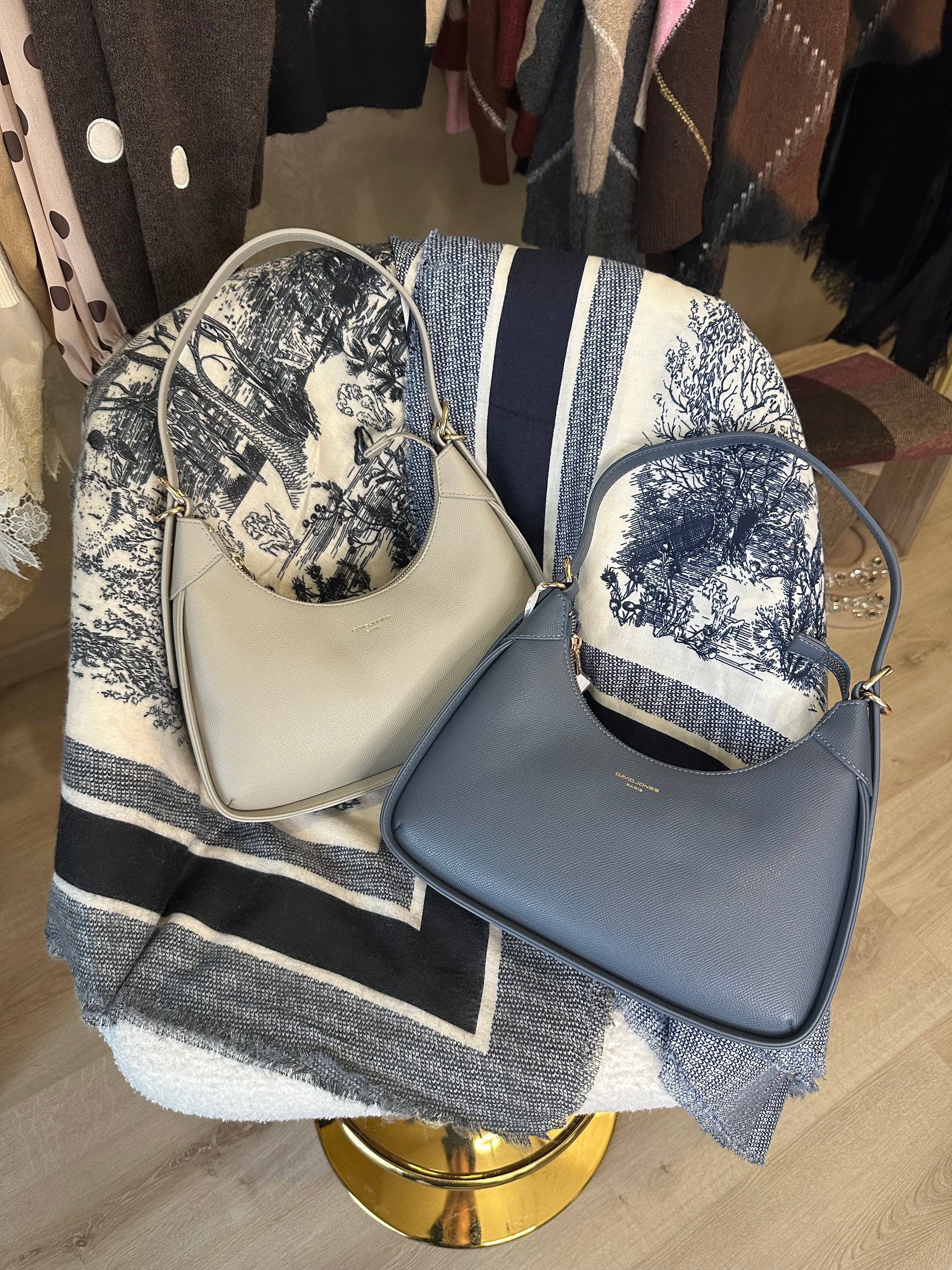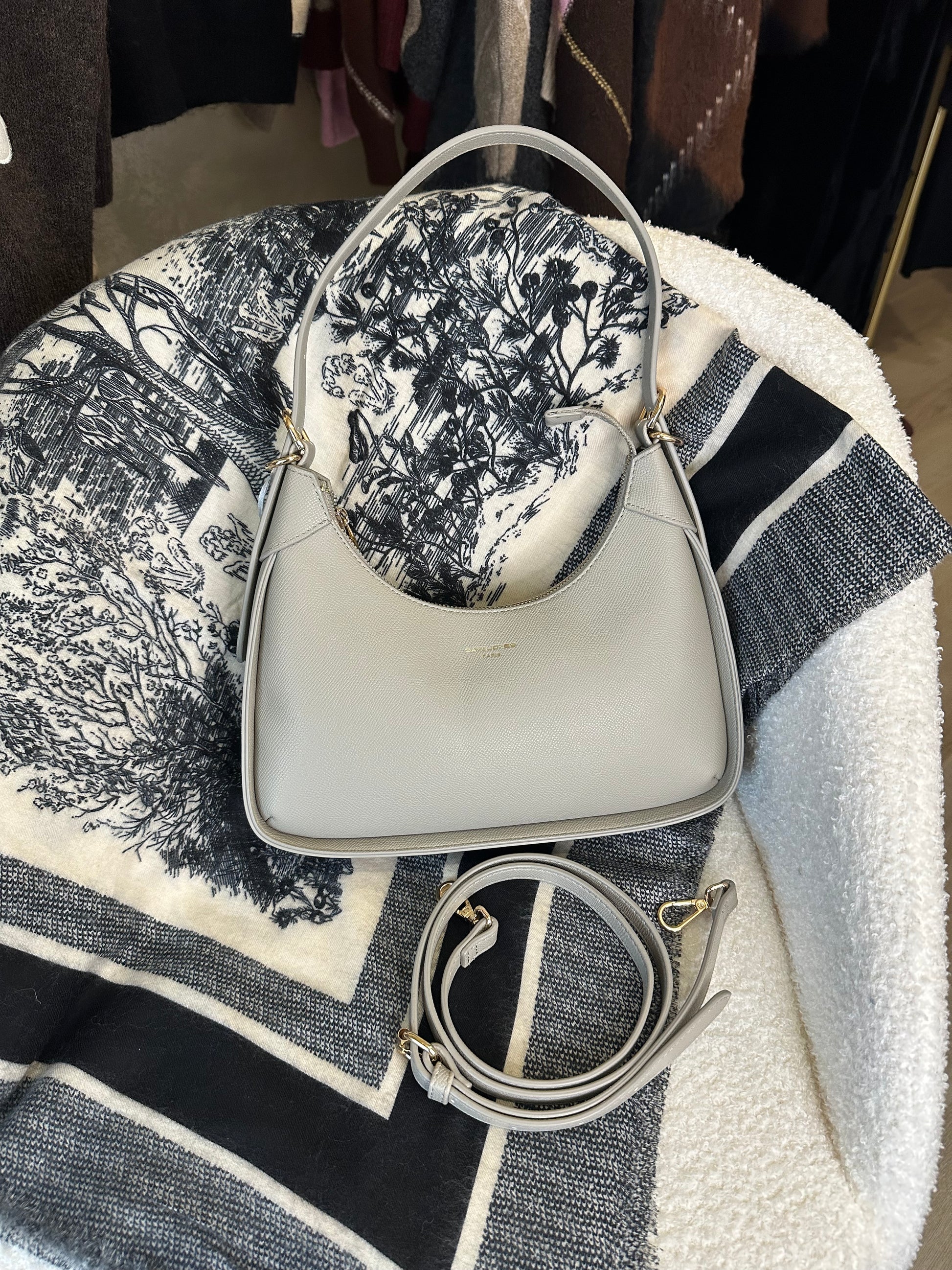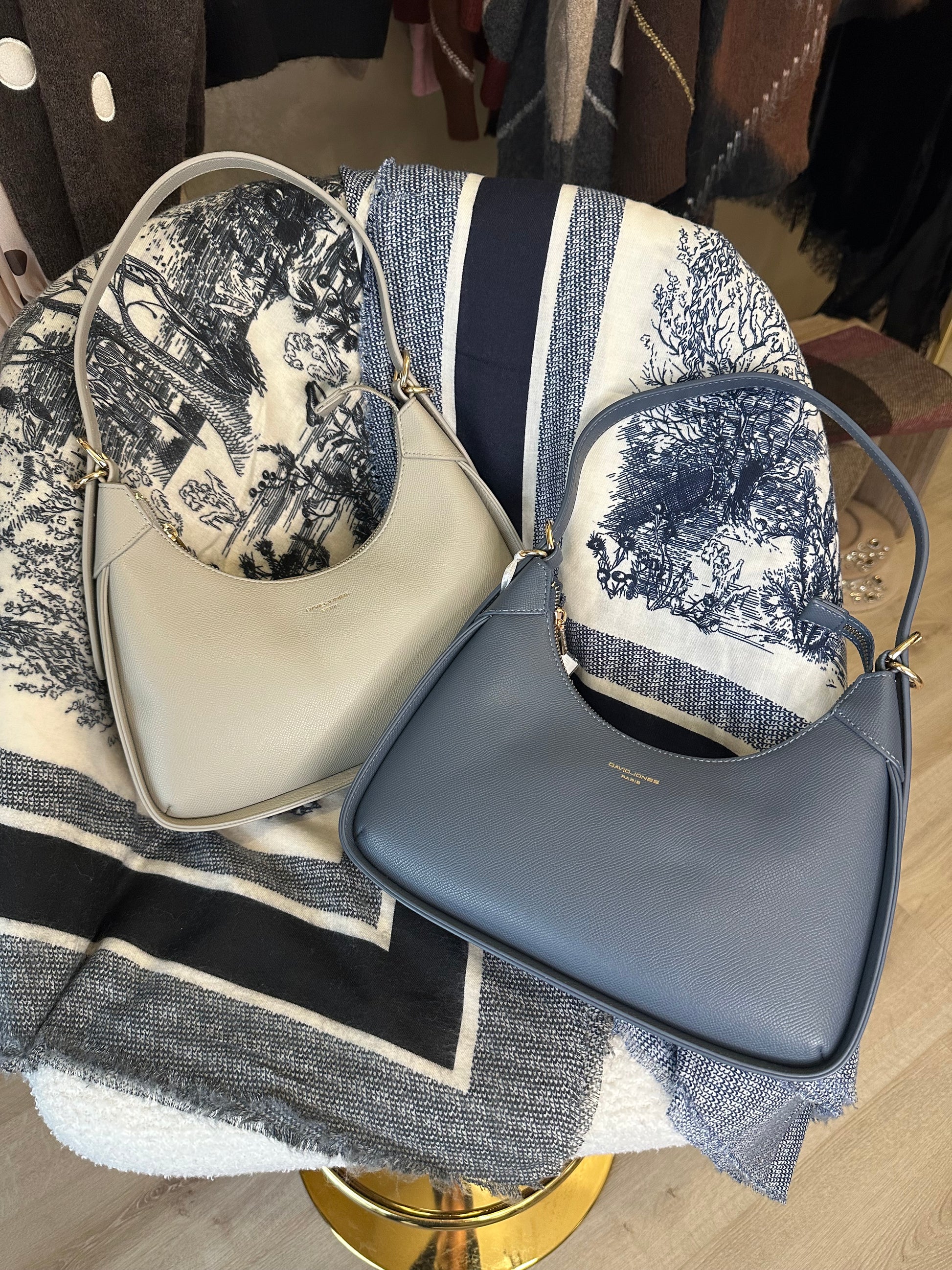 - Petit sac à main bleu jeans clair et gris clair de la marque DAVID JONES PARIS chic, pratique et tendance